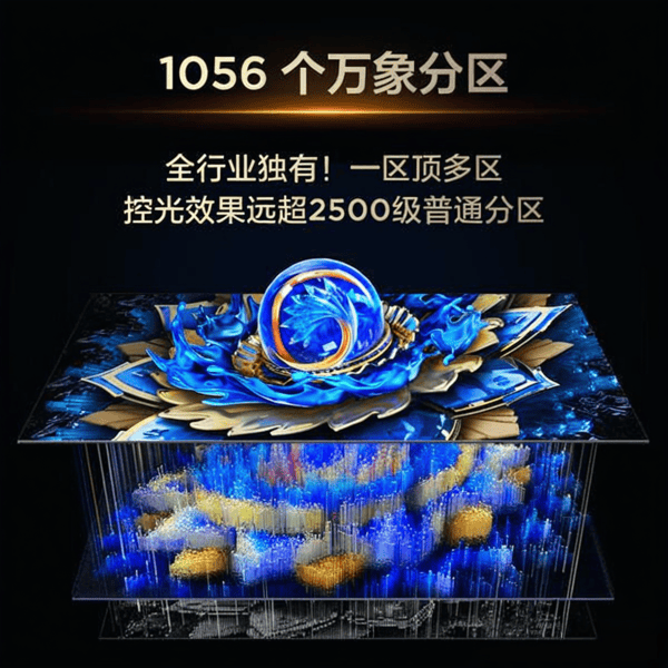 拥有1056个独立控光区的万象分区技术,在亮度和阴影表现上实现数倍提升。通过精准的控光能力,无论黑夜还是白昼,画面都能展现出更为鲜明的色彩与对比,使您在观影时如同身临其境。